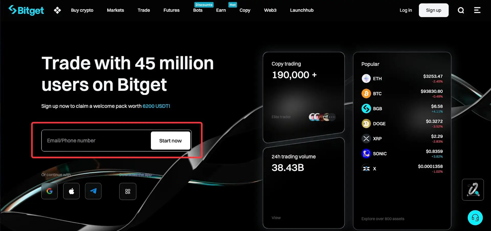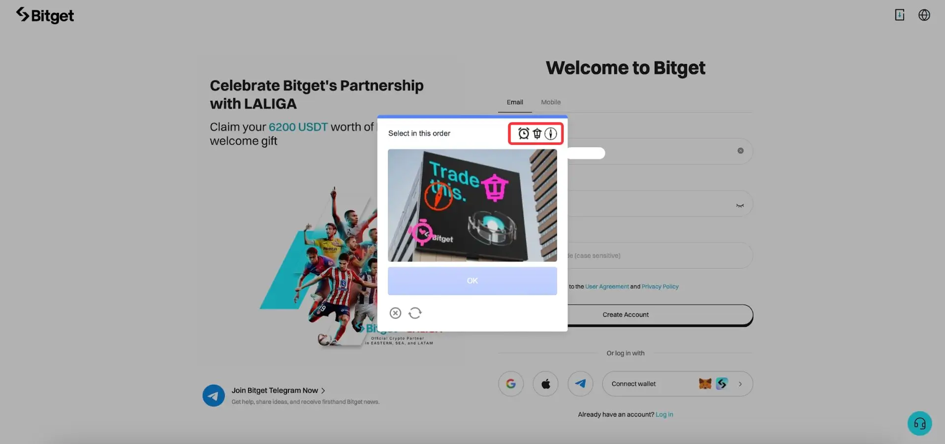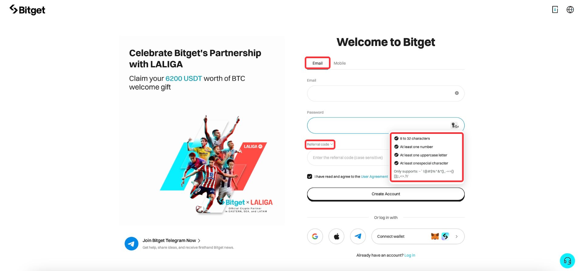 Na raspolaganju su vam različite opcije za registraciju: putem email-a, broja telefona, Google naloga, Apple naloga, Telegram naloga ili Web3 novčanika. Sa Bitget-om, samo nekoliko koraka vas deli od pristupa svim mogućnostima tržišta kriptovaluta!