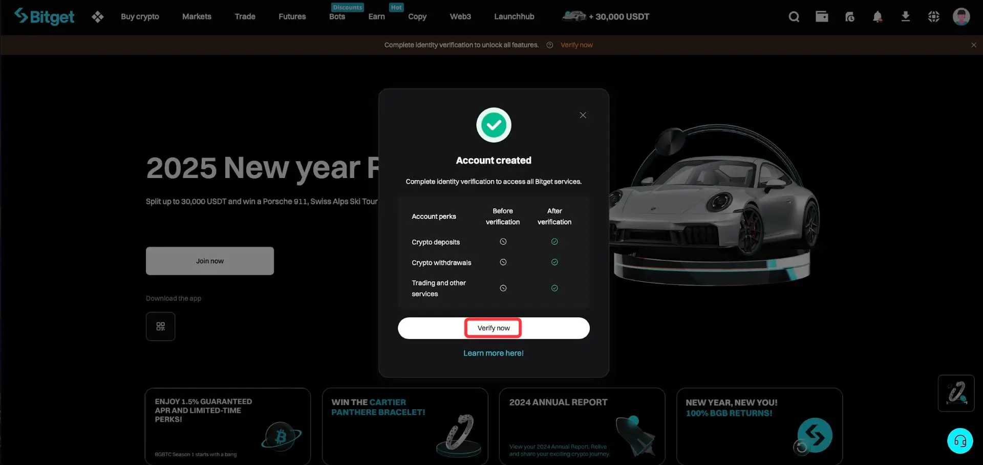 Radi zaštite korisnika i nesmetanog rada, svi korisnici su obavezni da završe KYC proces (proveru identiteta). Kada unesete verifikacioni kod, automatski ćete biti prijavljeni na svoj Bitget nalog. Evo kako će to izgledati: