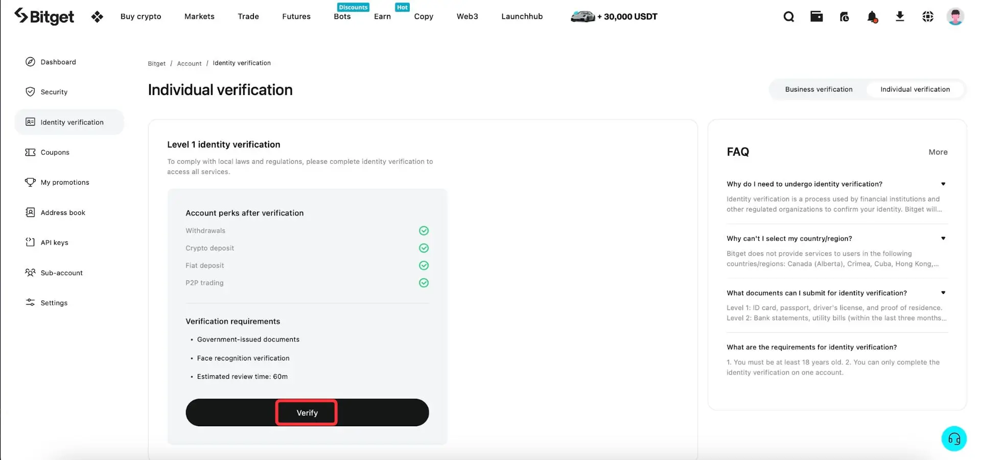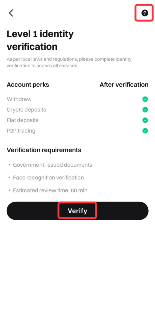 Pročitajte šta je KYC/verifikacija identiteta i zašto je potrebna. Zatim kliknite na [Verify].