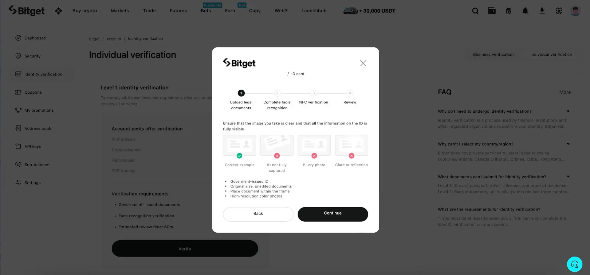 Ovde možete videti kako izgleda proces verifikacije identiteta. Potrebno je samo da pratite korak-po-korak vodič kako je prikazano u nastavku. Pogledajte ovaj jednostavan vodič “Your Quick And Success-Guaranteed Guide To KYC On Bitget “ kako biste verifikaciju identiteta učinili što bržom i lakšom.