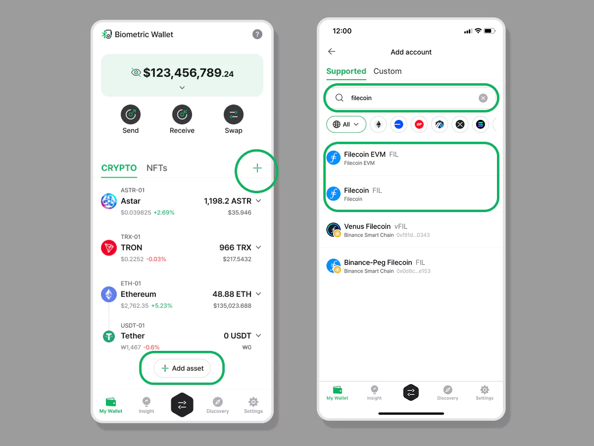 Kreirajte Filecoin ili Filecoin EVM račun na D’CENT biometrijskom novčaniku.