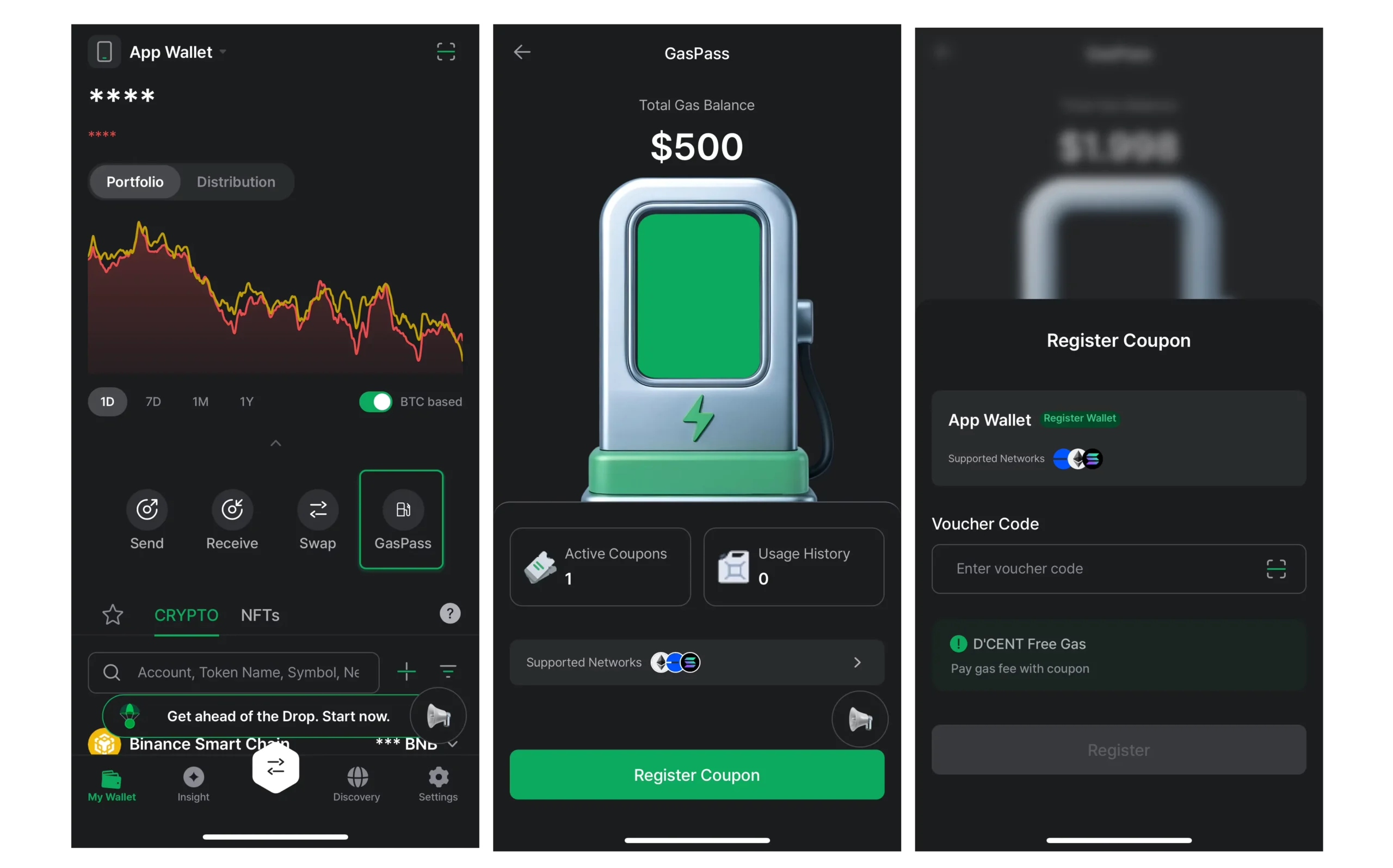 Drugim rečima: korisnici D’CENT Wallet-a imaju besprekorno iskustvo korišćenja više mreža bez potrebe za gas tokenima.