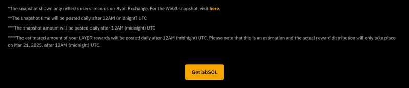 • Vreme snimka i iznos bbSOL-a, kao i procena broja LAYER nagrada, objavljuju se svakodnevno nakon 00:00 UTC.