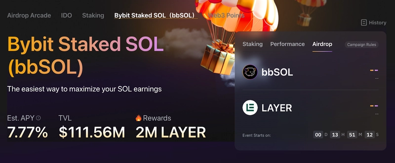 Svet kripto stakinga (ulaganja) stalno napreduje, pružajući nove načine da korisnici zarade dodatni prihod. Jedna takva prilika je bbSOL HODLverse – poseban događaj koji traje nedelju dana, tokom kog korisnici jednostavno drže bbSOL kriptovalutu i zauzvrat dobijaju LAYER tokene, bez dodatnog truda. Ukupni fond nagrada je čak 2.000.000 LAYER tokena. Sve što treba da uradite jeste da držite bbSOL na vašem Bybit nalogu ili u Bybit Web3 novčaniku.