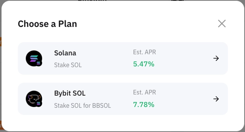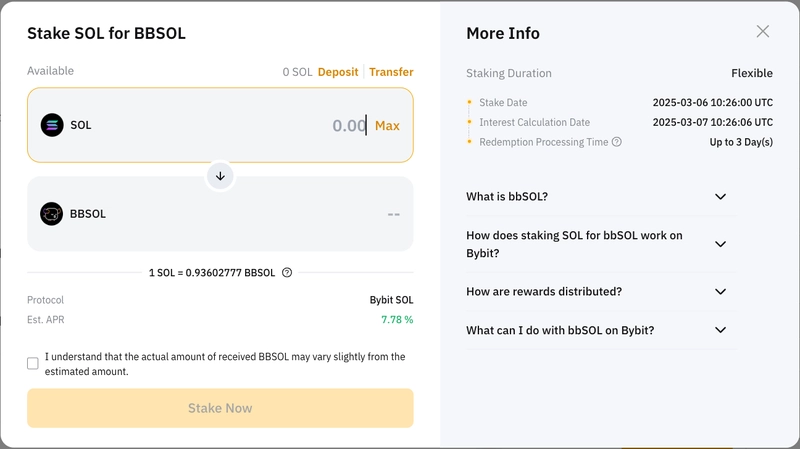 Odaberite opciju Bybit SOL da biste zamenili vaš SOL za bbSOL.