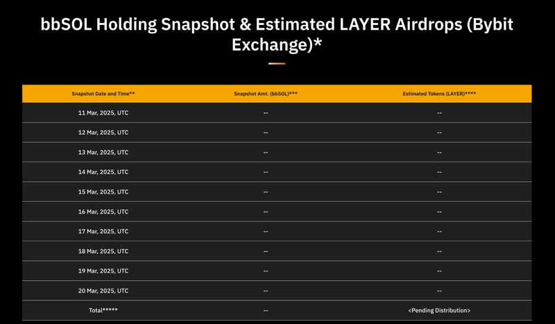 bbSOL HODLverse je događaj koji traje od 11. marta 2025. (00:00 UTC) do 20. marta 2025. (23:59 UTC), tokom kojeg korisnici Bybit platforme mogu da zarade LAYER tokene jednostavno tako što će držati bbSOL kriptovalutu u svom Bybit nalogu ili Bybit Web3 novčaniku.