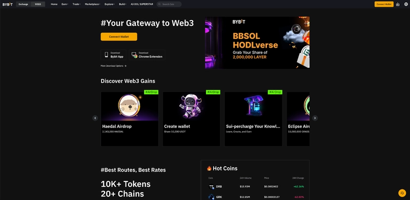 Idite na početnu stranicu Bybit Web3 i povežite vaš Web3 novčanik klikom na dugme Connect Wallet u gornjem desnom uglu stranice.