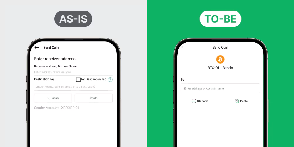 Sada, prilikom slanja kriptovalute, na vrhu ekrana će biti vidljivi ikonica valute (simbol), naziv naloga, tiker (skraćeni naziv valute, npr. BTC). Ovo omogućava korisnicima da trenutno prepoznaju koju valutu šalju, bez mogućnosti zabune.